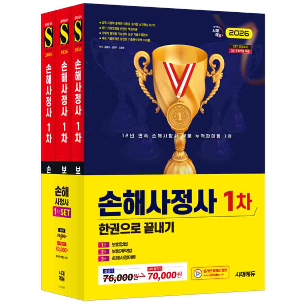 2026 ½Ã´ë¿¡µà ¼ÕÇØ»çÁ¤»ç 1Â÷ ÇѱÇÀ¸·Î ³¡³»±â 3Á¾ SET µµ¼´Â ¼ÕÇØ»çÁ¤»ç 1Â÷ ½ÃÇè¿¡ ¿Ïº®ÇÏ°Ô ´ëºñÇÒ ¼ö ÀÖµµ·Ï ±¸¼ºÇÑ µµ¼ÀÔ´Ï´Ù. Ãֽа³Á¤»çÇ×À» ¹Ý¿µÇÑ ÇÙ½ÉÀ̷аú ±× ³»¿ëÀ» ÀçÈ®ÀÎÇÒ ¼ö ÀÖ´Â ±âÃâÀ¯Çü¹®Á¦, ÃÖ±Ù 10³â°£ ±âÃâ¹®Á¦ Áß Áß¿ä ±âÃâ¹®Á¦¸¸À» ¾ö¼±ÇÏ¿© ¼ö·ÏÇÑ ±âÃâºÐ¼®¹®Á¦ 100àÔÀ» ÅëÇØ ¼öÇè»ýµéÀÌ ½ÇÁ¦ ½ÃÇèÀÇ ÃâÁ¦°æÇâÀ» ü°¨ÇÏ¸é¼ È¿À²ÀûÀ¸·Î ÇнÀÇÒ ¼ö ÀÖµµ·Ï ÇÏ¿´½À´Ï´Ù. º¸´Ù ±íÀÌ ÀÖ´Â ÇнÀÀ» ¿øÇÏ´Â ¼öÇè»ýµé¿¡°Ô´Â º» µµ¼¸¦ ±³Àç·Î »ç¿ëÇÏ´Â ½Ã´ë¿¡µàÀÇ µ¿¿µ»ó °ÀÇ(À¯·á)°¡ ÁغñµÇ¾î ÀÖ½À´Ï´Ù. 2026 ½Ã´ë¿¡µà ¼ÕÇØ»çÁ¤»ç ½Ã¸®Á ÅëÇØ ÇÕ°ÝÀÇ ±â»ÝÀ» ´©¸®½Ã±æ ¹Ù¶ø´Ï´Ù.