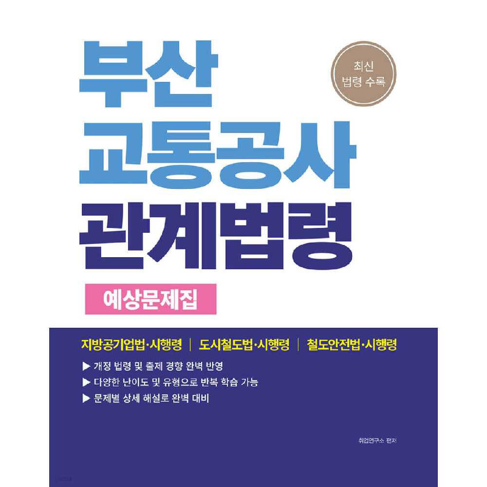 º»¼´Â ºÎ»ê±³Åë°ø»ç ÀϹÝÁ÷ ä¿ëÀ» ´ëºñÇϱâ À§ÇÑ µµ¼ÀÌ´Ù.ºÎ»ê±³Åë°ø»ç¿¡¼´Â ±âÁ¸ÀÇ Çʱâ½ÃÇè °ú¸ñÀÎ Á÷¾÷±âÃÊ´É·ÂÆò°¡¿Í Á÷¹«´É·ÂÆò°¡¿¡ ´õÇØ Àü Á÷·Ä °øÅëÀ¸·Î °ü°è¹ý·ÉÀ» Ãß°¡ÇÏ¿´´Ù. º»¼´Â ¹ý·Éº° ¿¹»ó¹®Á¦¸¦ ¼ö·ÏÇÏ¿´°í, ¸Å ¹®Á¦¸¶´Ù »ó¼¼ÇÑ ÇØ¼³À» ´Þ¾Æ È¿À²ÀûÀÎ ÇнÀÀ» ¿Ï¼ºÇÒ ¼ö ÀÖµµ·Ï ÇÏ¿´´Ù. ºÎ»ê±³Åë°ø»ç ÀϹÝÁ÷ ä¿ëÀ» ¼¿ø°¢°ú ÇÔ²² Á¤º¹ÇØ º¸ÀÚ!